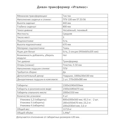 Диван-трансформер Италмас (Аквилон) продается в интернет-магазине mebelin-kolomna.ru по цене 73 376 руб. Есть доставка по Коломне и Московской области. Возможность подъема на этаж и сборки уточняйте у менеджера по телефону 8(800)505-27-11.
